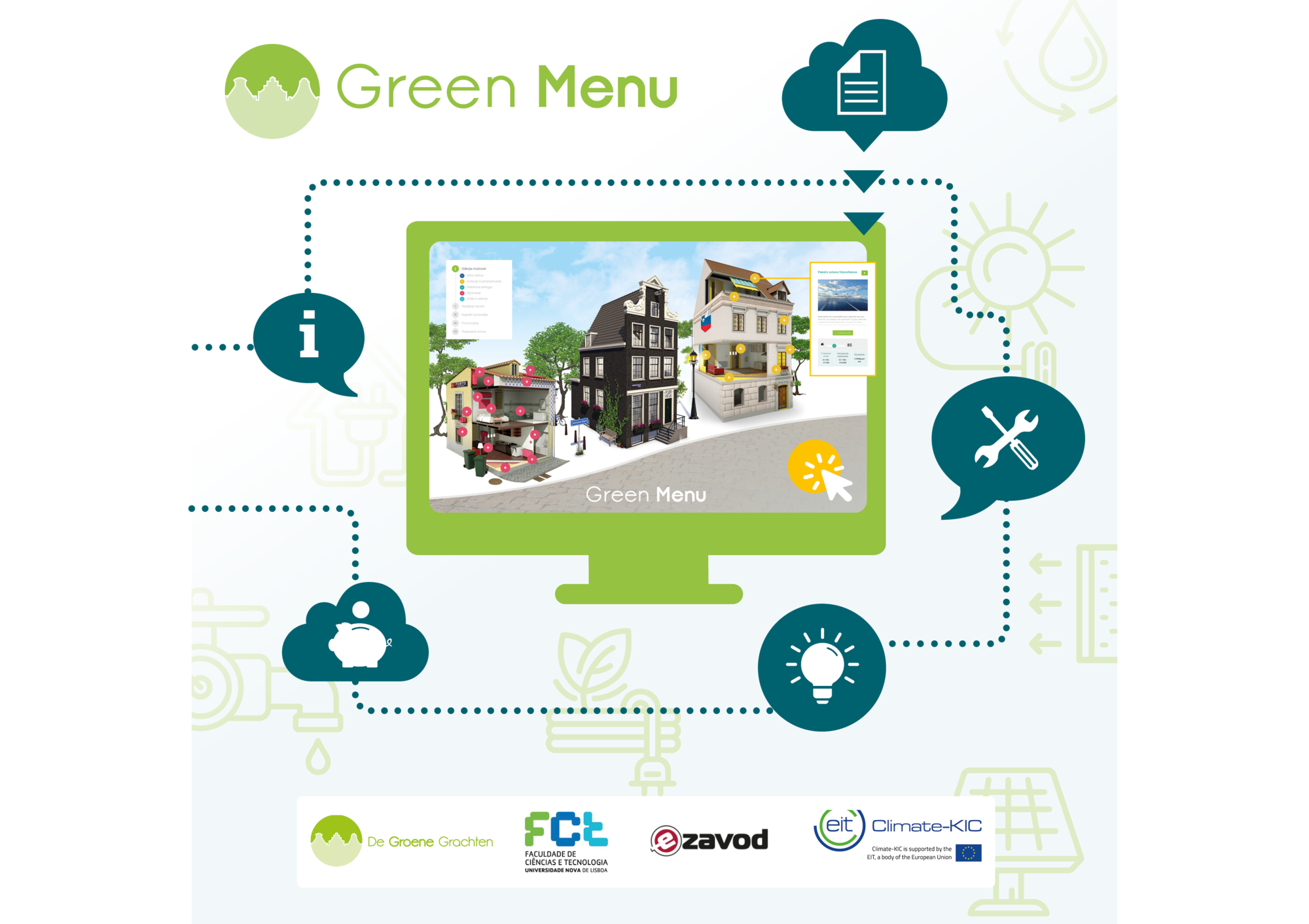 Dit project is een samenwerking tussen E-Zavod, Institute for Comprehensive Development Solutions (Slovenia), CENSE, FCT-NOVA University of Lisbon (Portugal) en De Groene Grachten. In drie landen met elk een eigen context en behoeften, maar de partners zijn verenigd in hun wens om kennis over duurzame erfgoed renovaties te verzamelen en op begrijpelijke wijze te ontsluiten voor woningeigenaren. Het project is geselecteerd als een van de ‘European Extraordinary Post Covid-19 Regeneration Projects’ en krijgt co-financiering van EIT Climate-KIC